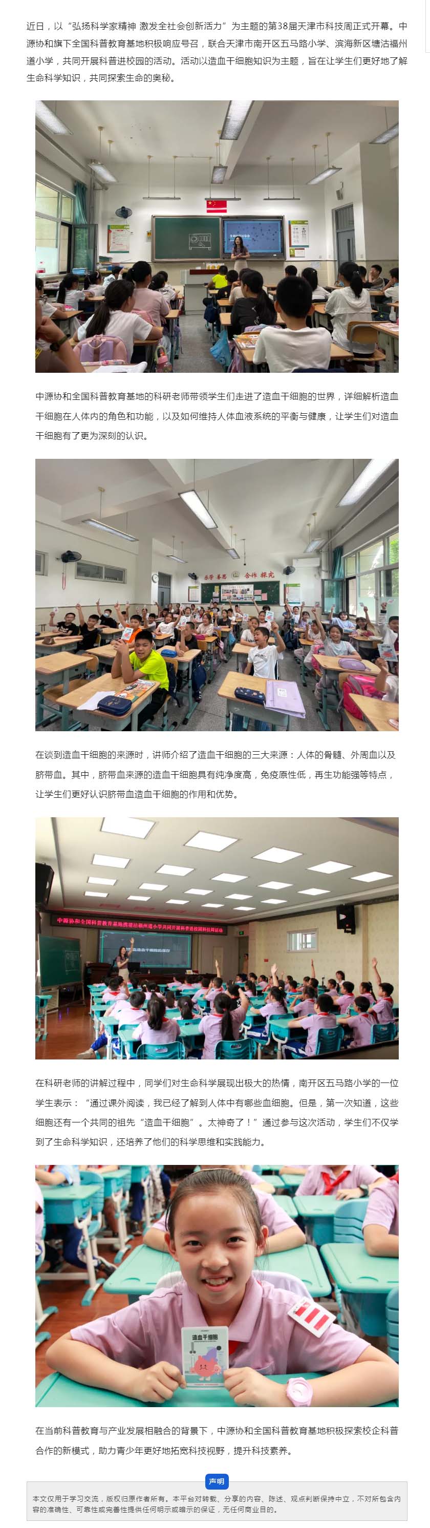 天津市第38届科技周开幕 中源协和全国科普教育基地开展科普进校园系列活动